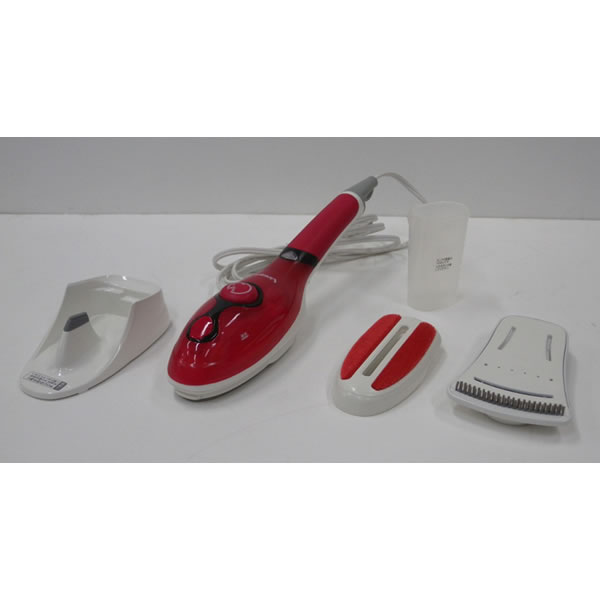 商品名 ビアレグレ ハンディーアイロン&スチーマー VT-SA211R サイズ、重量 本体のみ:W34.5×D7.6×H9.6cm、約0.64kg付属品込み:W35.4×D8.4×H11.4cm、約0.94kg個装箱:W36.6×D12.6×H9.3cm、約1.2kg 主要材質 本体:PCかけ面:アルミ(フッ素樹脂コーティング加工)水タンク:PP 定格電圧 100V 50/60Hz 定格消費電力 800W 水タンク容量 0.1L 噴出容量 0.2g/回 スチーム噴出口 6個 かけ面温度 高:190℃、中:150℃、低:100℃ かけ面広さ W5.6×D12.4cm (約65㎠) コード長さ 約2.5m 特長 ・安定蒸気でしっかり“しわ”のお手入れ・ブラシを外せば小型スチームアイロンとしても使えます・縦に配列されたスチーム穴から安定したスチームを供給・スチームがワイドに噴霧できるアタッチメント付 付属品 衣類ブラシ、ワイドアタッチメント、スタンド、計量カップ、取扱説明書 本体カラー ・レッド 備考 出荷はご注文日から7-14営業日後(土日祝除く)となります。
